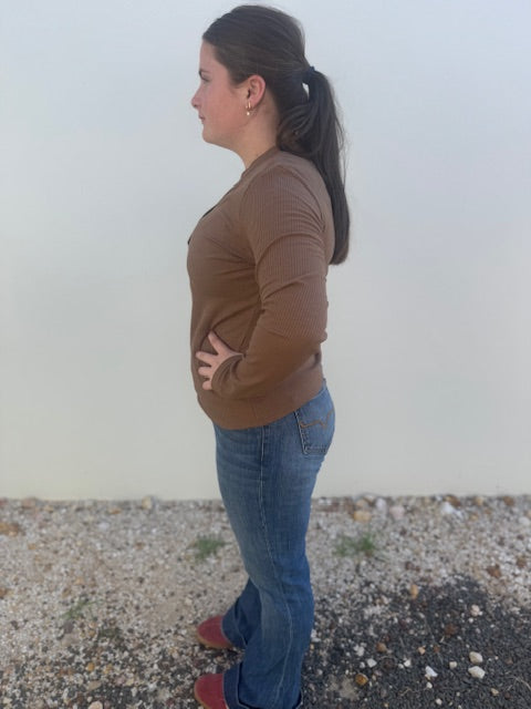 Jump Womens V Neck Rib L/S Henley Top